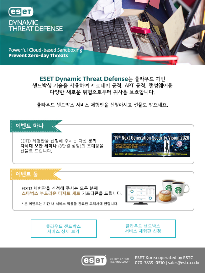 | 이셋코리아가 'ESET 긴급 보안 지원 키트'를 지원합니다. (0) | 2020.06.03 |