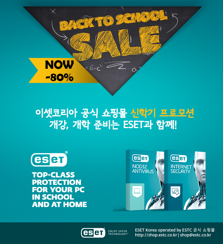 ESET KOREA operated by ESTC | 이창규 | 서울시 송파구 송파대로 167 테라타워1 A동 521호 | 사업자 등록번호 : 264-81-44862 | TEL : 02-567-0510 | Mail : sales@estc.co.kr | 통신판매신고번호 : 제2015-서울서초-0624호 | 사이버몰의 이용약관 바로가기