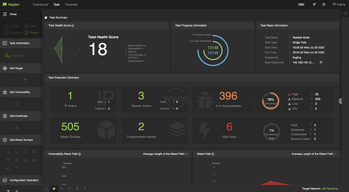 는 지능형 보안 검증 로봇인 RidgeBot으로 이 게임을 변화시키고 있습니다. 위협, 취약성 및 악용에 대한 종합적인 지식을 바탕으로 모델링 되었으며, 최첨단 해킹 기술이 탑재되어 있습니다. RidgeBot은 실제 공격자처럼 행동하여 끊임없이 익스플로잇을 찾아내고 그 결과를 문서화합니다. RidgeBot은 침투 테스트를 자동화하여 규모에 맞게 실행할 수 있는 기능을 통해 적당한 비용으로 제공합니다. 이들은 정의된 범위 내에서 작동하며 매우 복잡한 구조를 다루기 위해 즉시 복제됩니다.