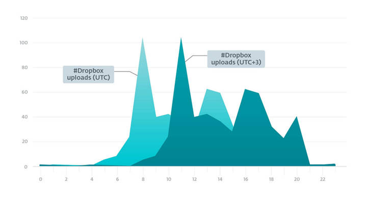 운영자의 작업 시간을 대략적으로 파악하기 위해 ESET은 ZIP 파일을 업로드한 시간을 그들이 운영하는 Dropbox 계정으로 내보냈습니다. 이를 위해 연구원들은 2018년 10월부터 2019년 7월까지 506개의 서로 다른 타임 스탬프를 수집했는데, 이는 피해자들의 머신이 작동 중일 때가 아니라 운영자가 작업 중일 때를 보여주어야 하기 때문입니다. 운영자는 UTC +3 표준 시간대에서 작업할 가능성이 높습니다.