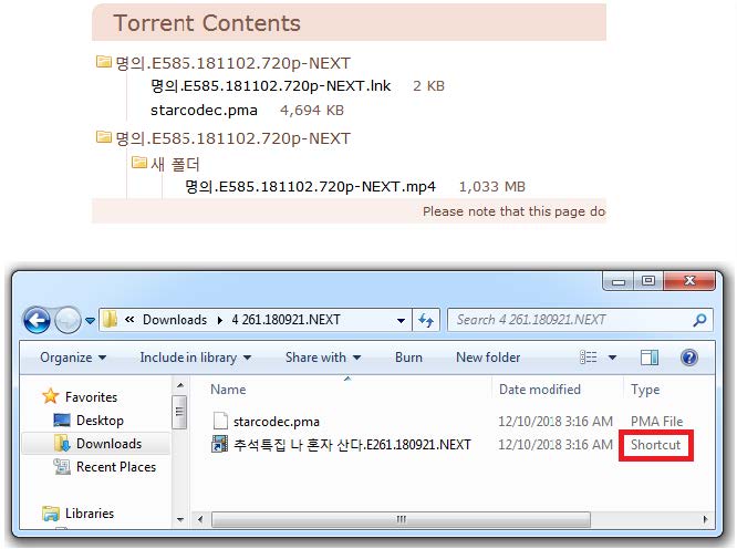 비디오 파일을 클릭하는 것만으로 악성코드에 감염되지는 않지만, PMA 파일을 실행한다거나 바로가기 링크를 클릭하면 즉시 악성코드에 감염되어 피해가 발생할 수 있다.