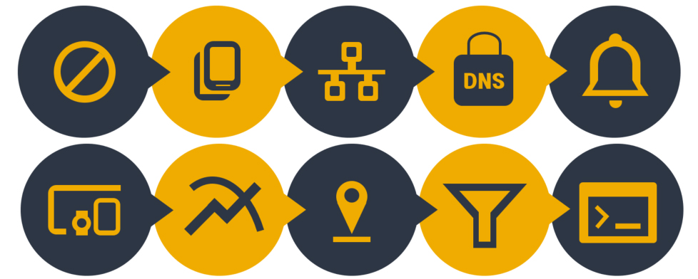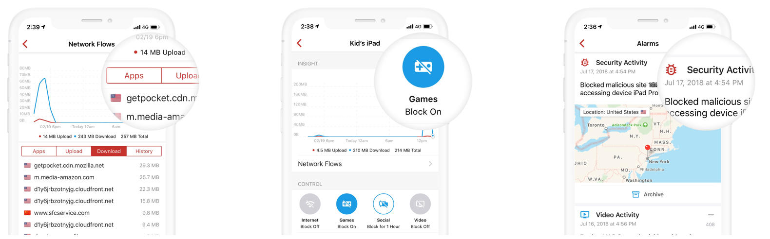 | 자동 차단 | 여러 방화벽을 관리하는 하나의 앱 | 내부 및 외부 취약성 검색 | HTTPS를 통한 DNS | 알람 관리 |
