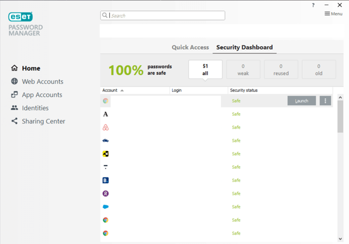 ESET Password Manager (ESET Smart Security Premium 기능의 일부)를 이용해 강력하고 유일한 패스워드를 생성할 수 있습니다. 패스워드 관리자를 사용하는 것은 하나의 긴 비밀구절(사적인 단서)만 기억하면 되기 때문에 매우 좋은 방법이며 몇 번의 클릭만으로 다른 모든 계정 패스워드를 쉽게 관리할 수 있습니다.
