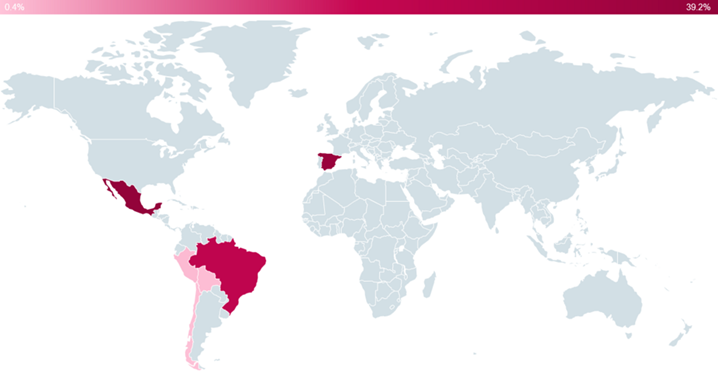 Grandoreiro는 브라질, 멕시코, 스페인 및 페루의 사용자를 타겟으로 합니다. 스팸메일을 통해 배포된 이 트로이목마는 최근 세계적으로 유행 중인 코로나19 전염병을 악용하는 가짜 웹사이트를 사용하기 시작했습니다. 또한 Grandoreiro 제작자들은 안티 맬웨어 프로그램의 탐지를 회피하기 위해 지속적인 노력을 하고 있는 것으로 밝혀졌습니다.
